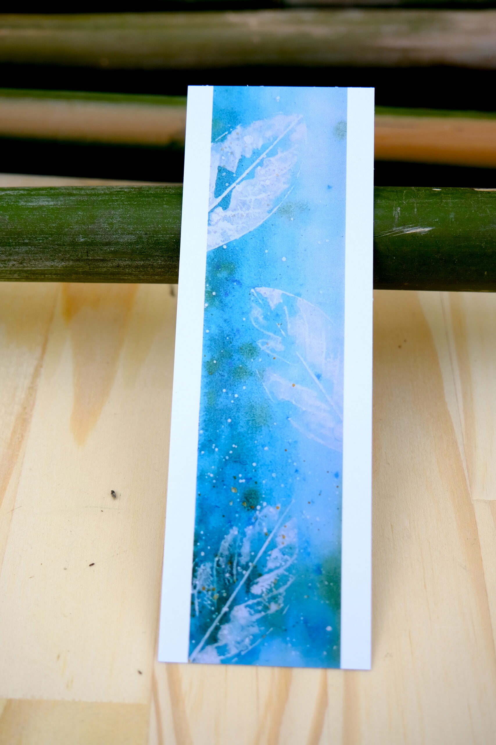 Marque-page bleu empreintes végétaux